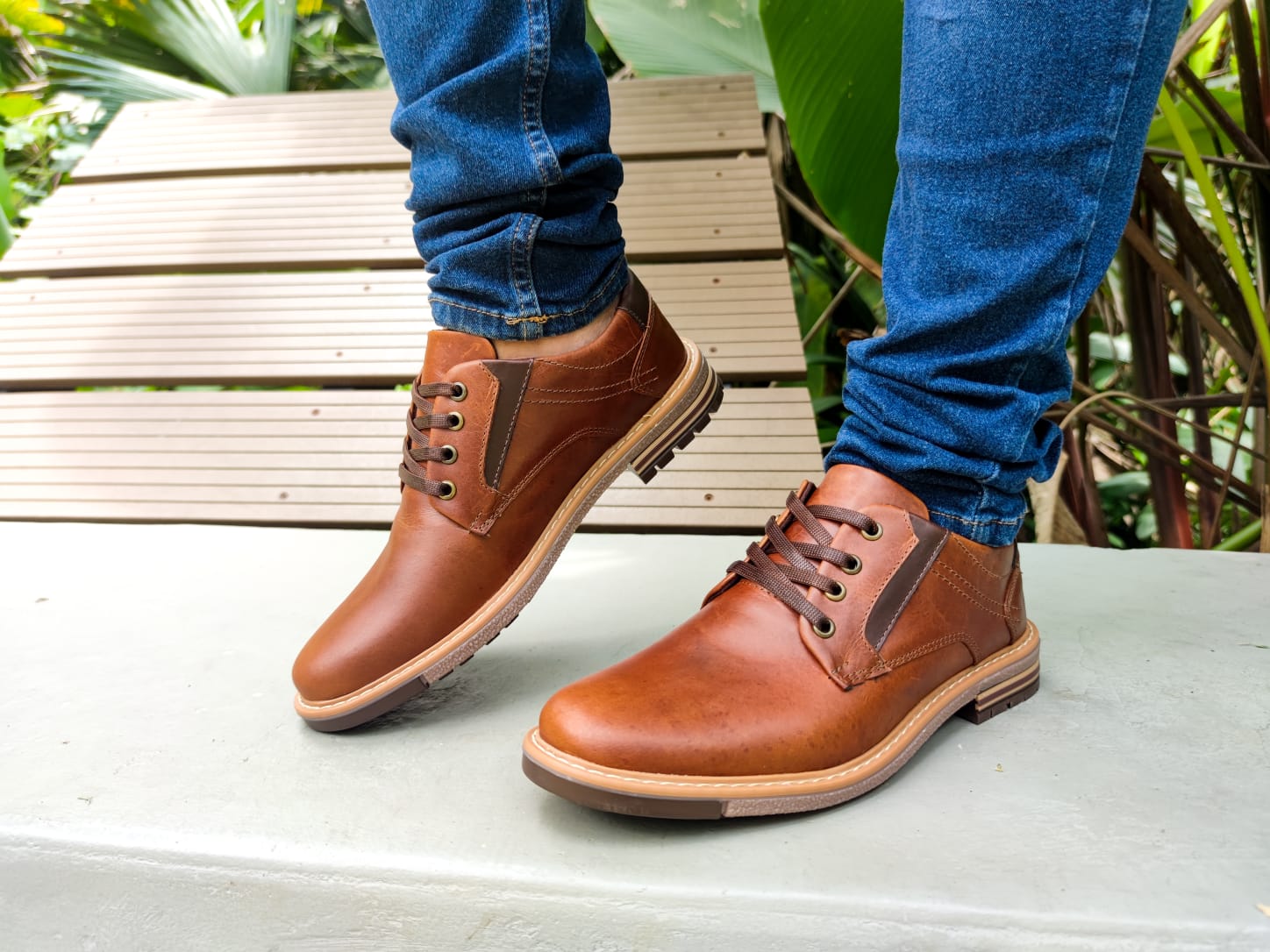 ”El pie del modelo mide 27.4 cm (desde el talón hasta el dedo gordo) y calza talla 41. Para medir el tuyo, hazlo descalzo y sobre una superficie plana.”